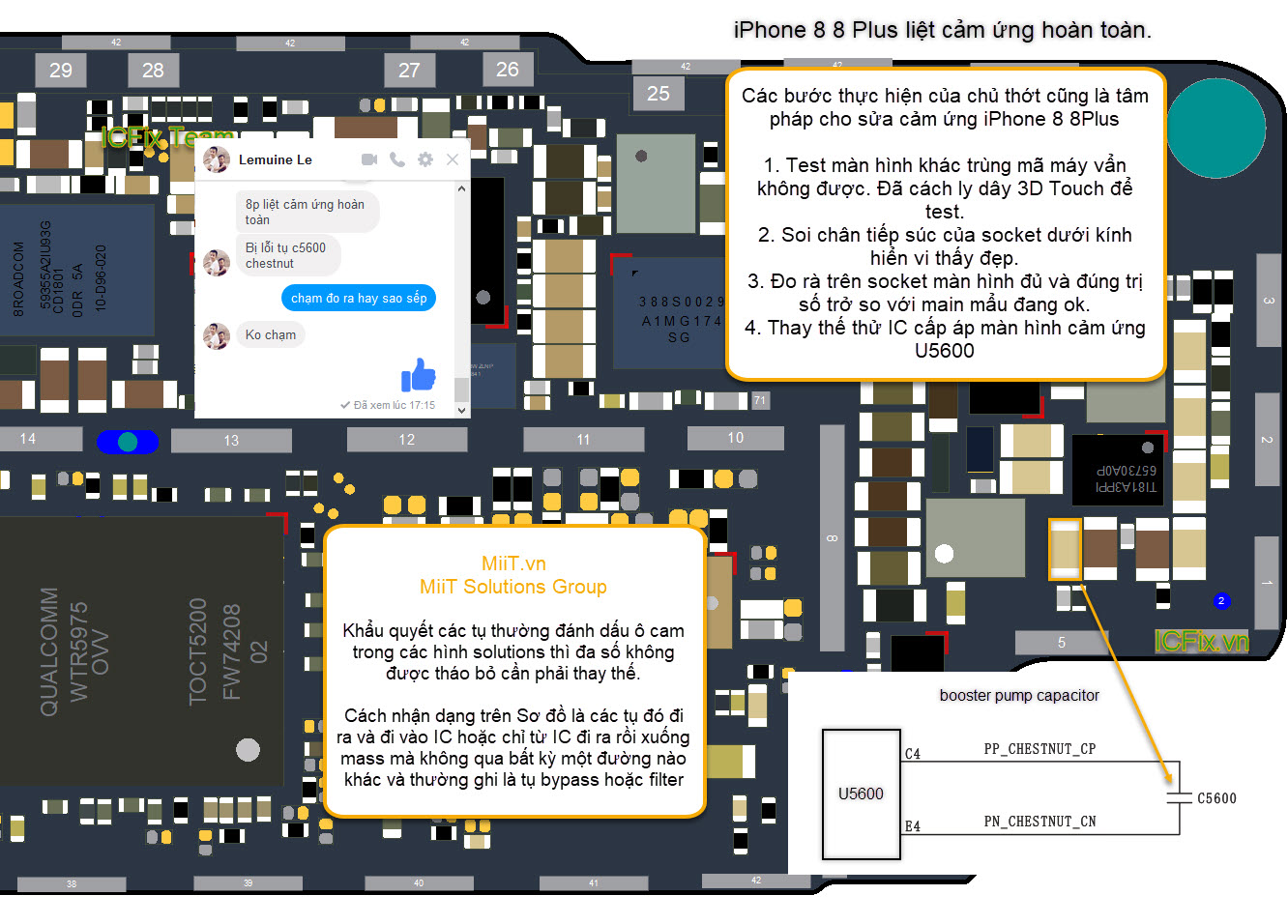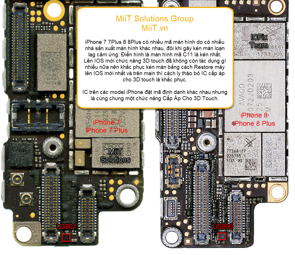 Sửa iPhone 8 Plus Lỗi Cảm Ứng do mainboard làm theo các bước ở hình bên trên. Lưu ý là iPhone 7 Plus và 8 Plus cho nhiều mã kén màn hình nên phải test kỹ màn hình đúng mã trước khi thao tác vào main ở trường hợp cảm ứng good nhưng lâu lâu loạn lag.