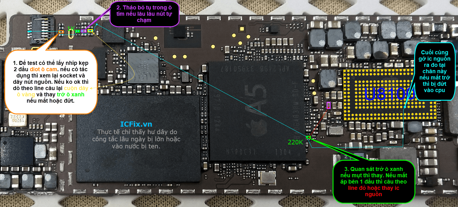 - Gạt lên gạt xuống không có tác dụng. Tháo main ra lấy nhíp kẹp vào nếu không có tác dụng là lỗi main.