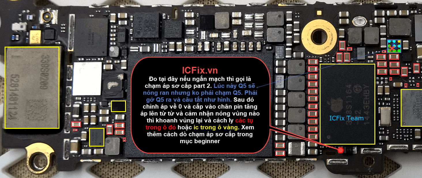 - Step: Xem các bước trên hình để sửa iPhone 5C đang xem youtube mất nguồn chạm VCC Main