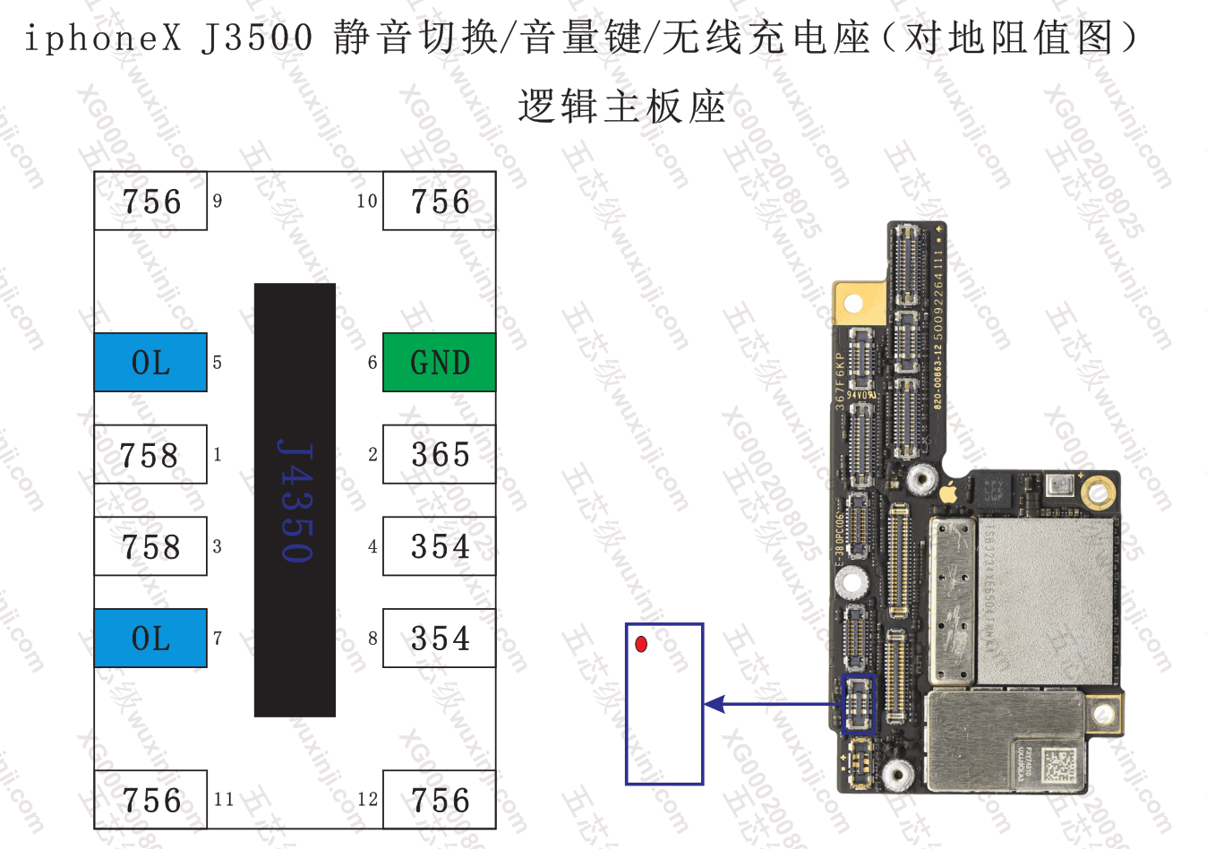 Sơ đồ sửa chữa thu gọn J3500 Socket quản lý phím vật lý, xạc không dây, la bàn iPhone X :