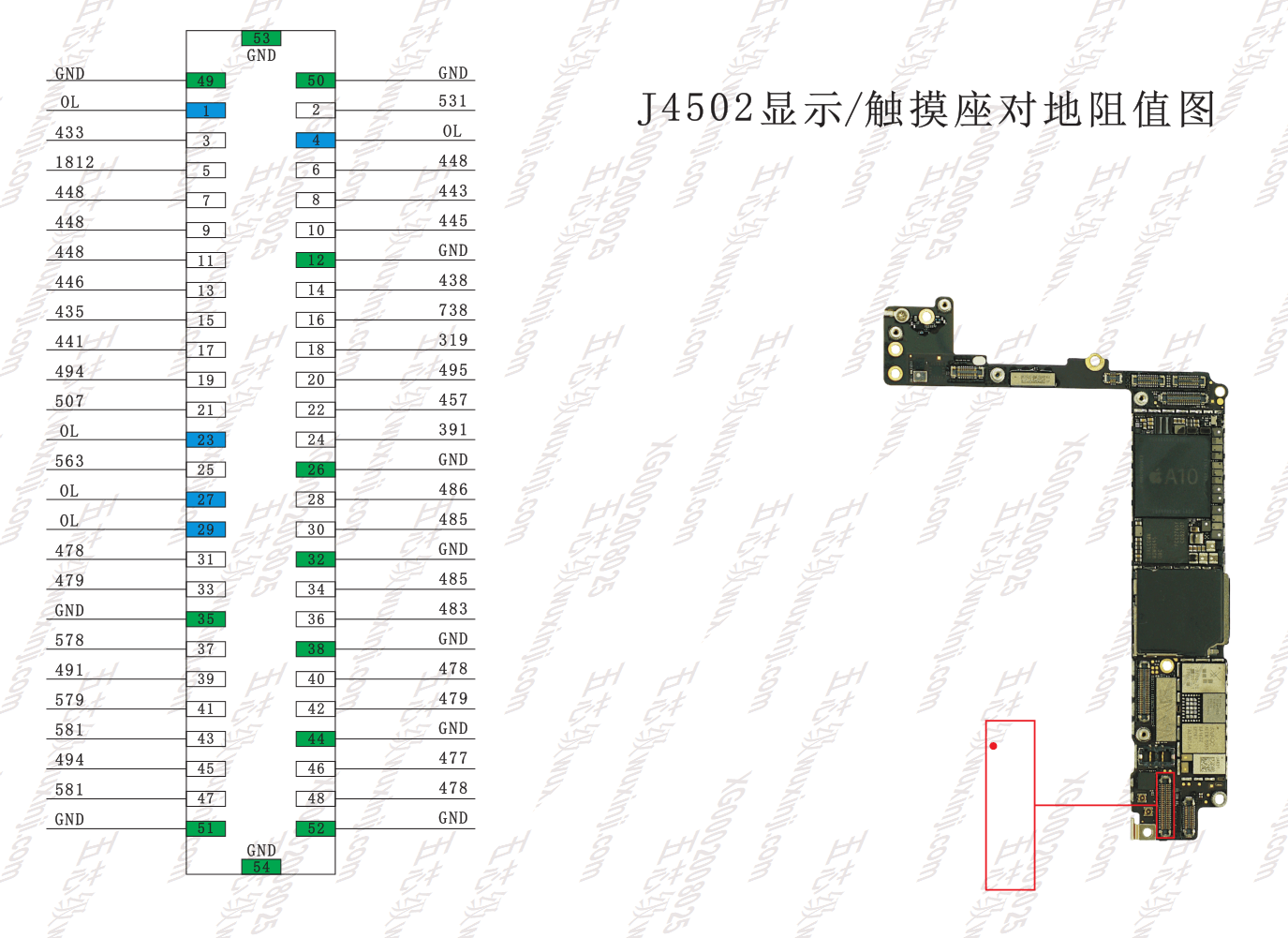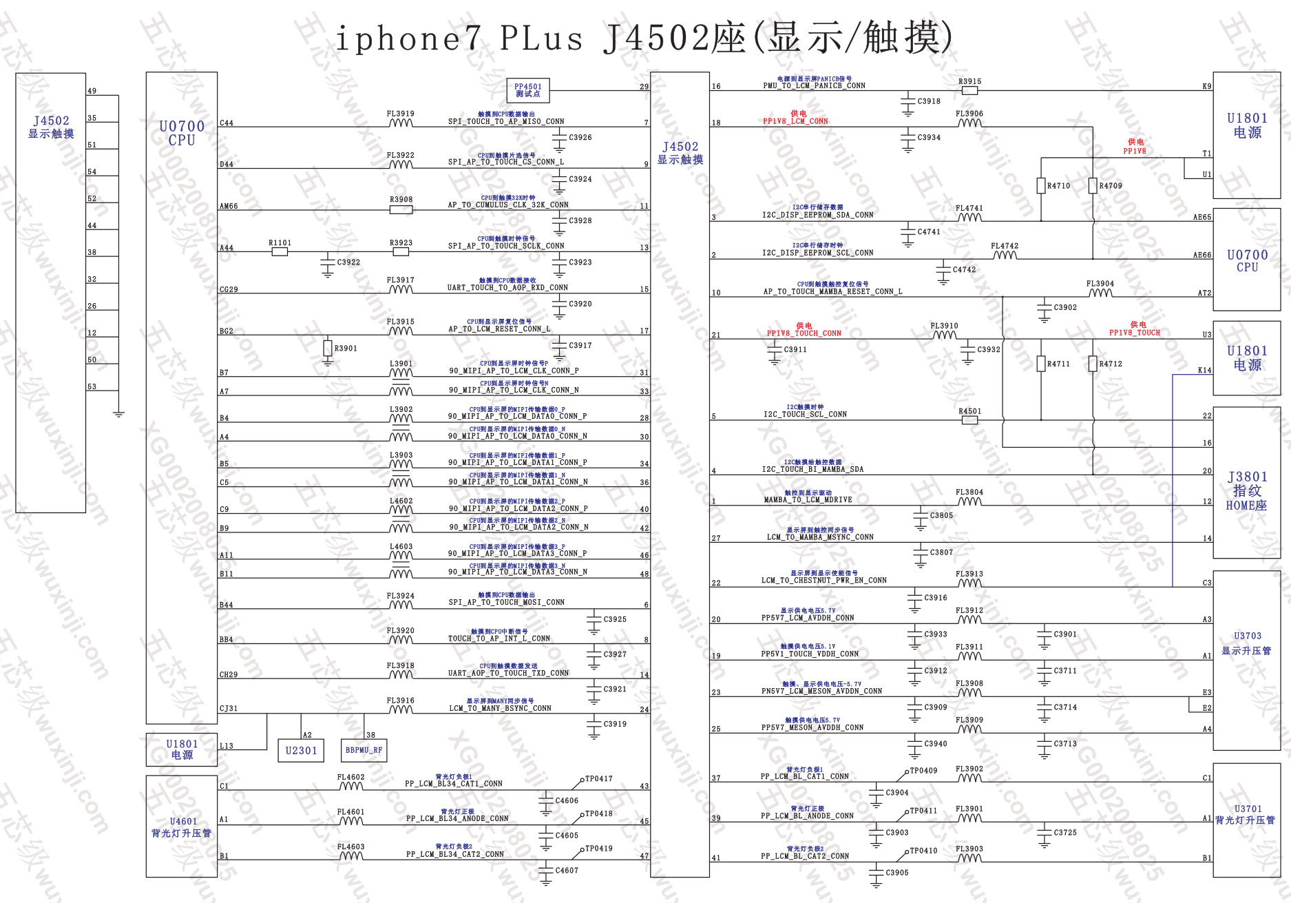 Sơ đồ sửa chữa thu gọn J4502 Socket màn hình, cảm ứng và đèn màn hình iPhone 7 Plus :