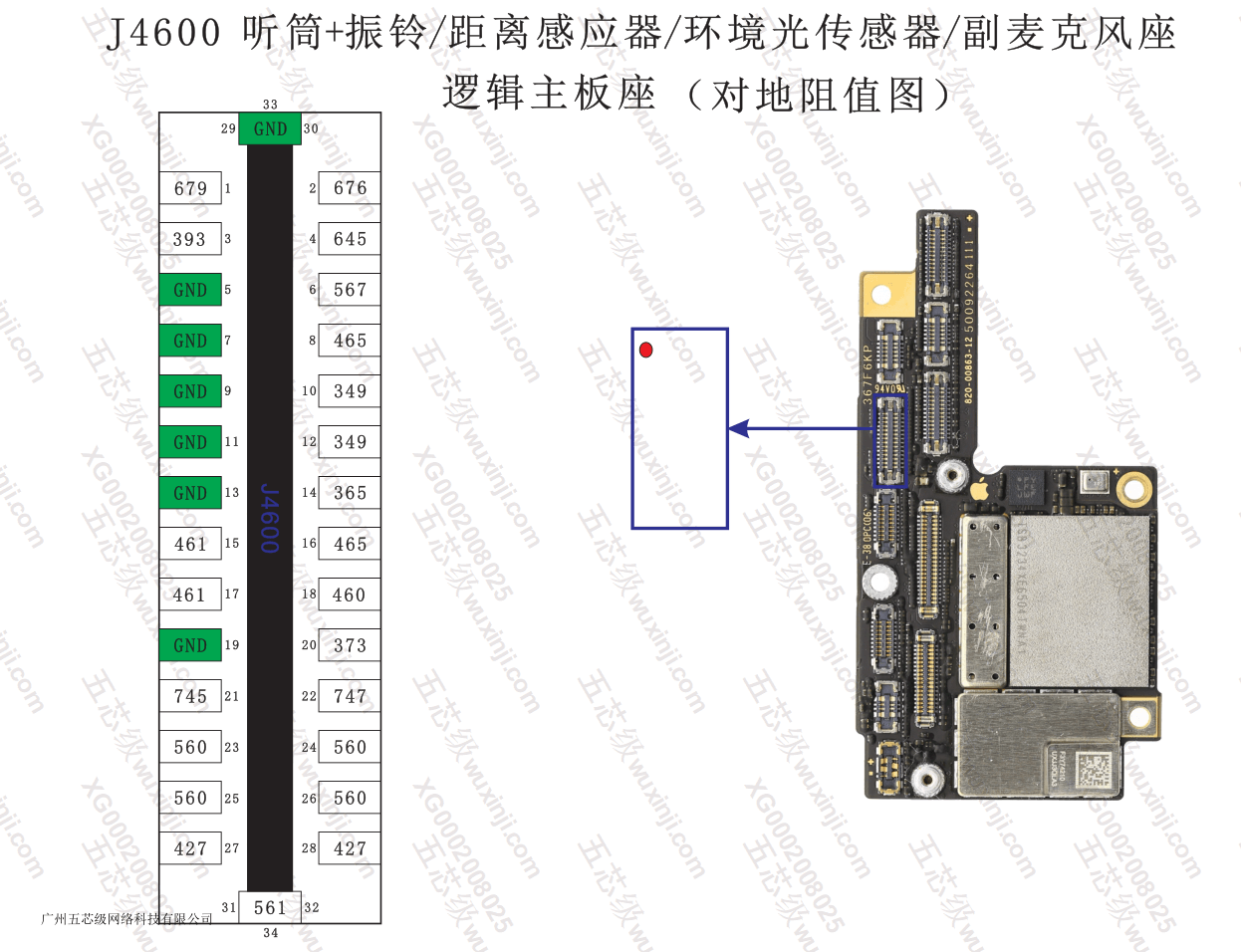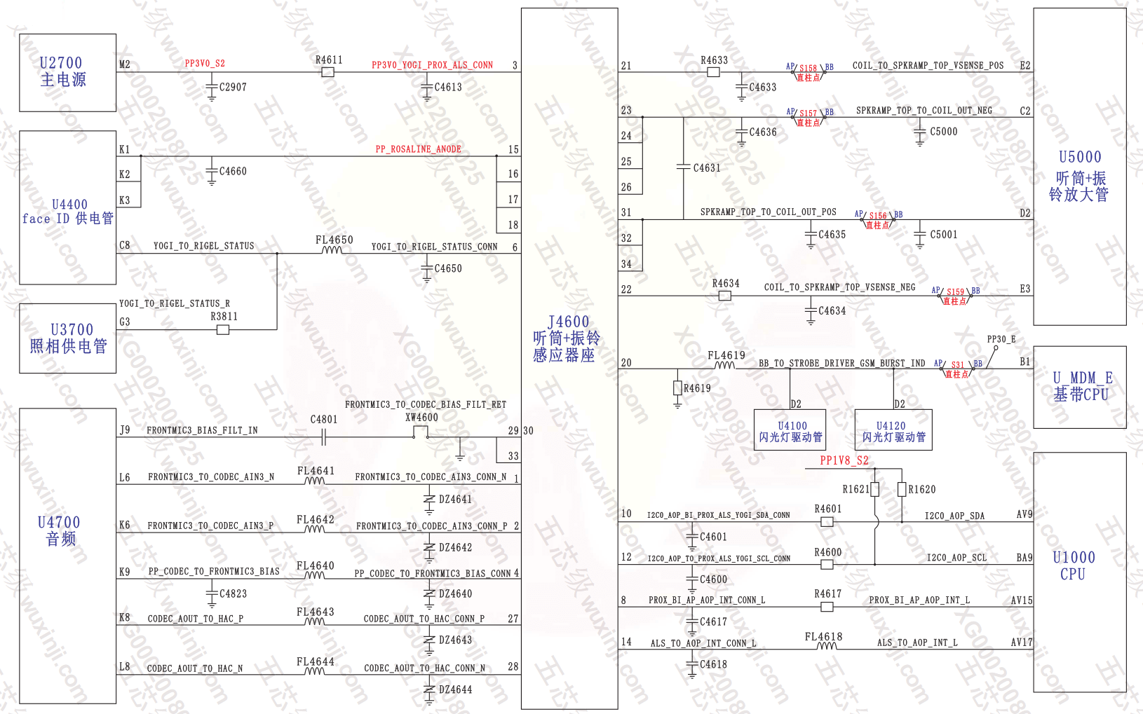 Sơ đồ sửa chữa thu gọn J4600 socket quản lý loa mic facetime cảm biến iPhone X :