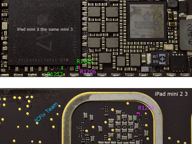 • Step1: Câu tắt lại R1205 ô xanh vào tháo bỏ R1204 ô tím. là máy sẽ về DFU và nhận ra ipad mini bản wifi. Restore lại là lên nguồn nhưng chưa active được.