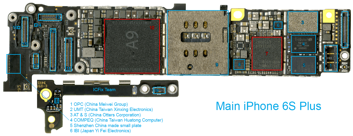 Tên IC, chức năng và sơ đồ của từng IC trên main iPhone 6S Plus