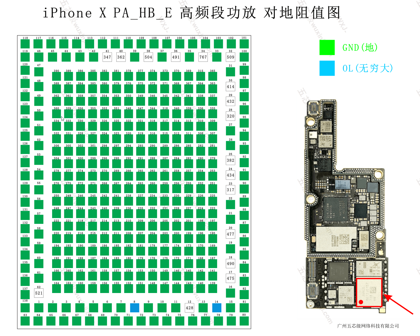 Sơ đồ sửa chữa thu gọn PA HB E công suất phát sóng băng tần cao iPhone X: