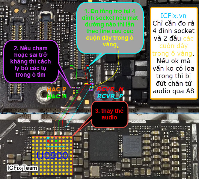 - Thay thế test thử cụm dây loa và loa khác nếu vẫn không được thì máy đã bị lỗi trên main.