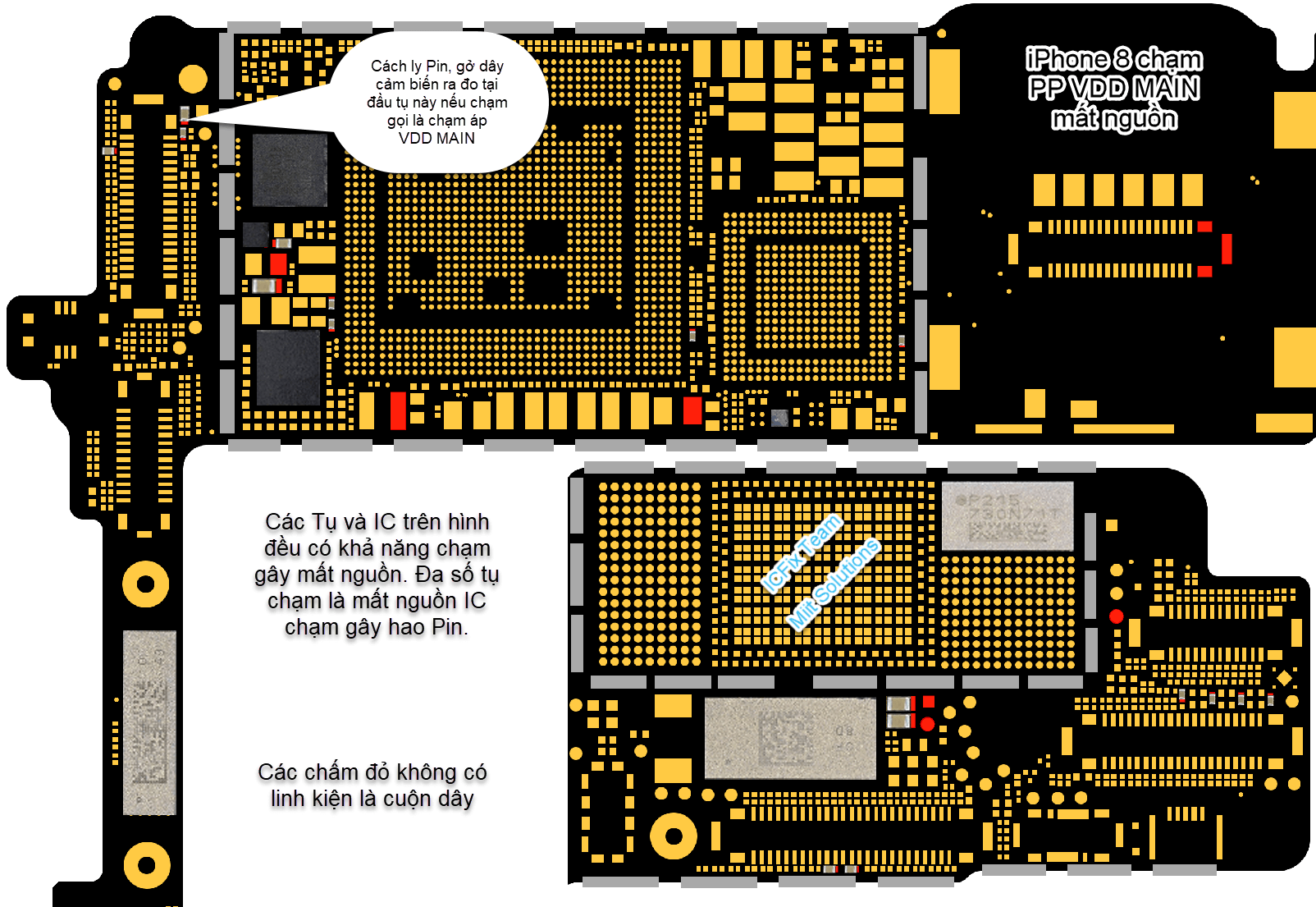 Kinh Nghiệm Sửa  iPhone 8 Mất Nguồn Chạm VDD Main