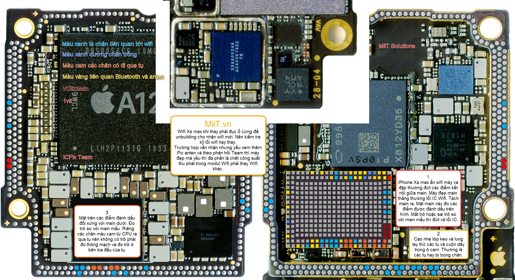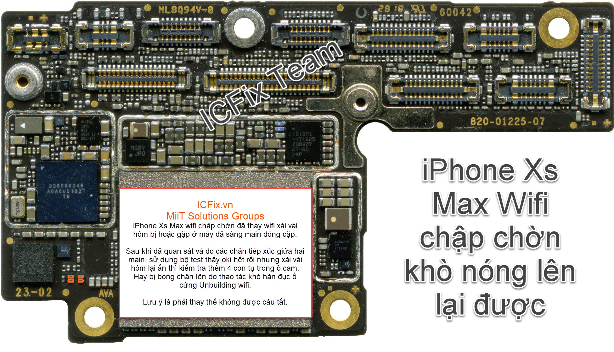 Trong mạch iPhone Xs max ic wifi được ký hiệu là U WLan W và mã để nhận diện IC là 339S00540 mã này được khắc trên lưng của IC. Bạn có thể tìm trên google tên mã 339S00540 để biết nó xài chung với model máy nào. Hoặc mua tại Shop của ICFix Team.