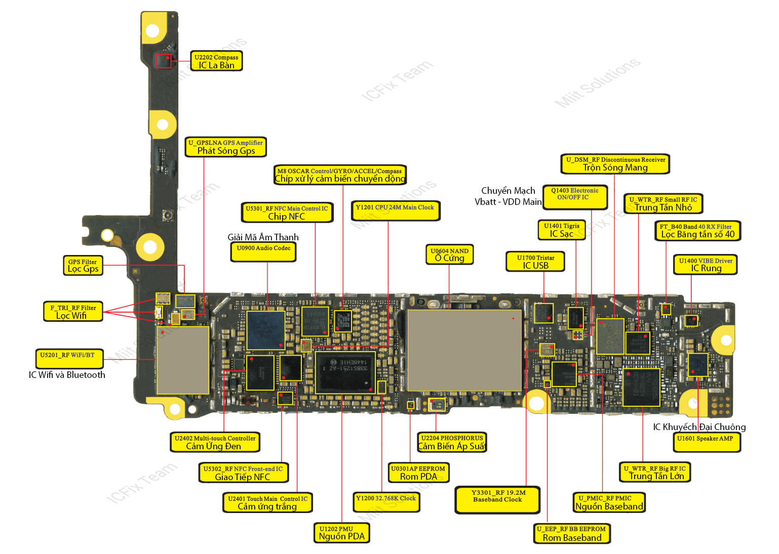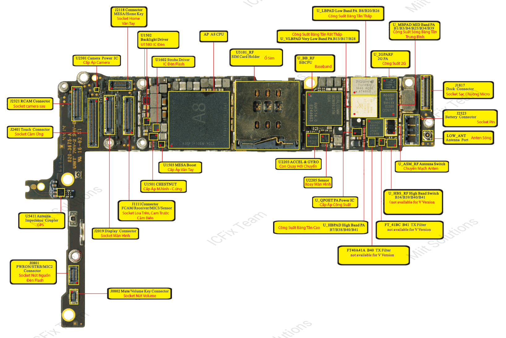 Linh Kiện iPhone 6 Plus gồm những gì, tên IC , tên socket và các chức năng của từng IC từng socket sẽ được trình bày trong các bức ảnh bên dưới.