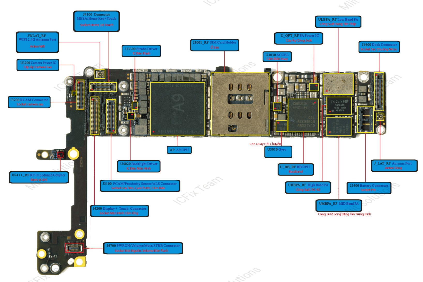 Bài này giúp chúng ta biết được Linh Kiện iPhone 6S tên gì và làm chức năng gì. Xem rồi nhớ luôn khi gặp thực tế sẽ cũng cố thêm sau này chỉ cần nhìn mặt IC là biết được nó làm nhiệm vụ gì.