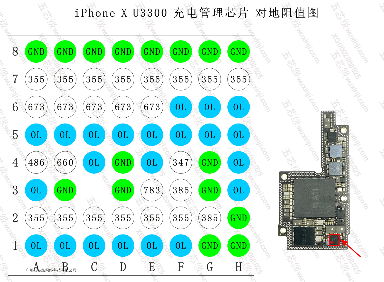 Sơ đồ sửa chữa thu gọn U3300 IC xạc iPhone X :