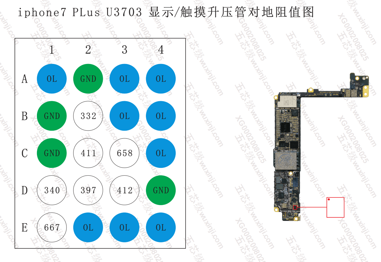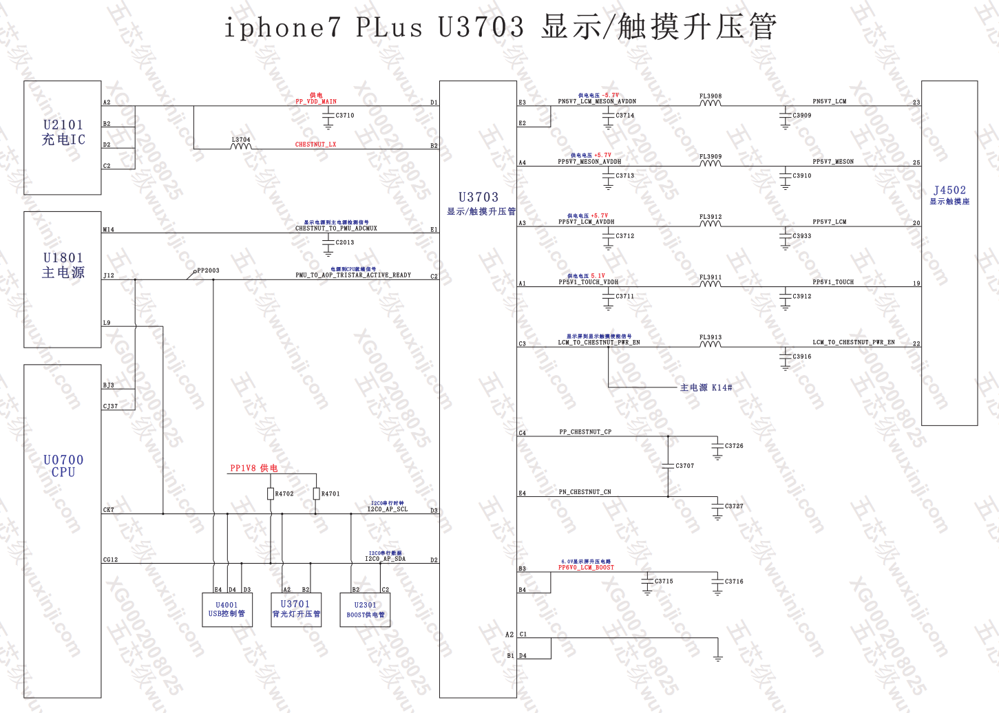 Sơ đồ sửa chữa thu gọn U3703 IC cấp áp màn hình và cảm ứng iPhone 7 Plus :